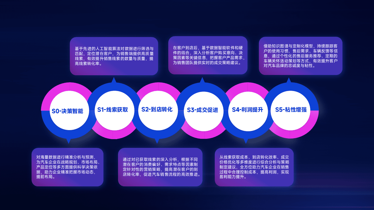 通过拓宽潜在客户来源、、优化线索分配并提高到店转化率,,,以增强销售效率。。同时,,,利用线索数据不断优化分析模型,,有效提升转化率,,,,扩大营销影响力。。